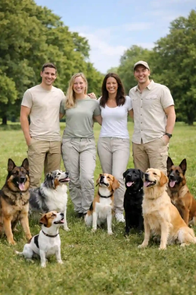 Csapatunk lelkes és elhivatott kutyabarátokból áll, akik szeretik és tisztelik a kutyákat, és mélyen hisznek abban, hogy a jól kiképzett kutya boldogabb és egészségesebb életet él. Csapattagjaink mindegyike nagy tapasztalattal rendelkezik kutyák kiképzésében, és személyes küldetésének tekinti a gazdik és kedvenceik közötti harmonikus kapcsolat kialakítását.